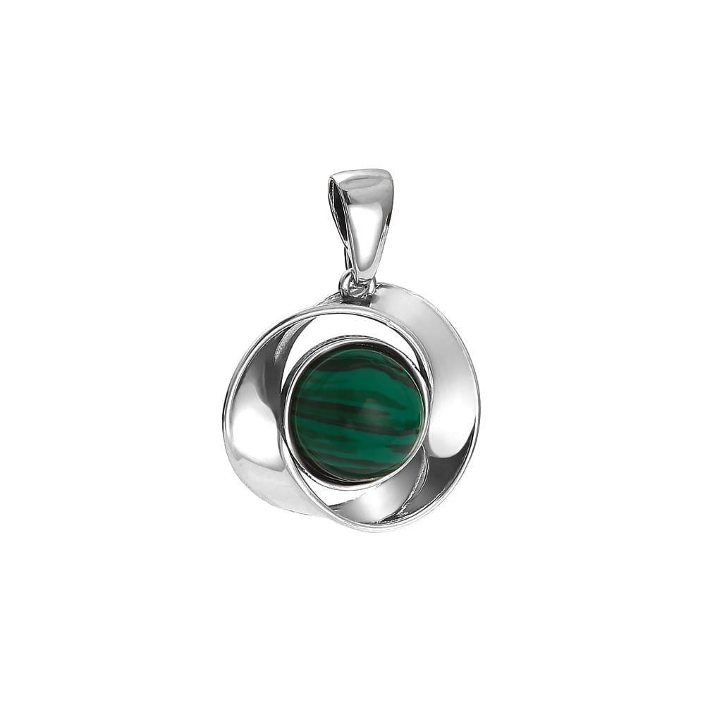 Srebrna zawieszka w kształcie kwiata z zielonym kamieniem malachit
