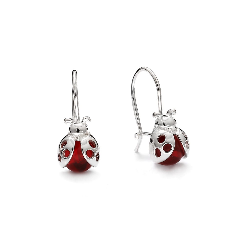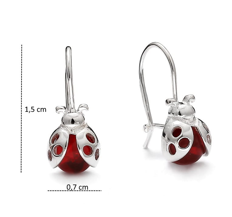 Srebrne kolczyki dziecięce biedronki biedroneczki na biglu